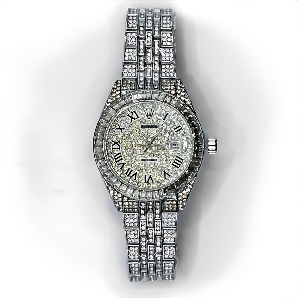 ساعت مچی زنامه و مردانه ROLEX فول نگین نقره ای