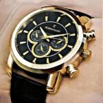 رنگ مشکی قاب و عقربه طلایی ثابت